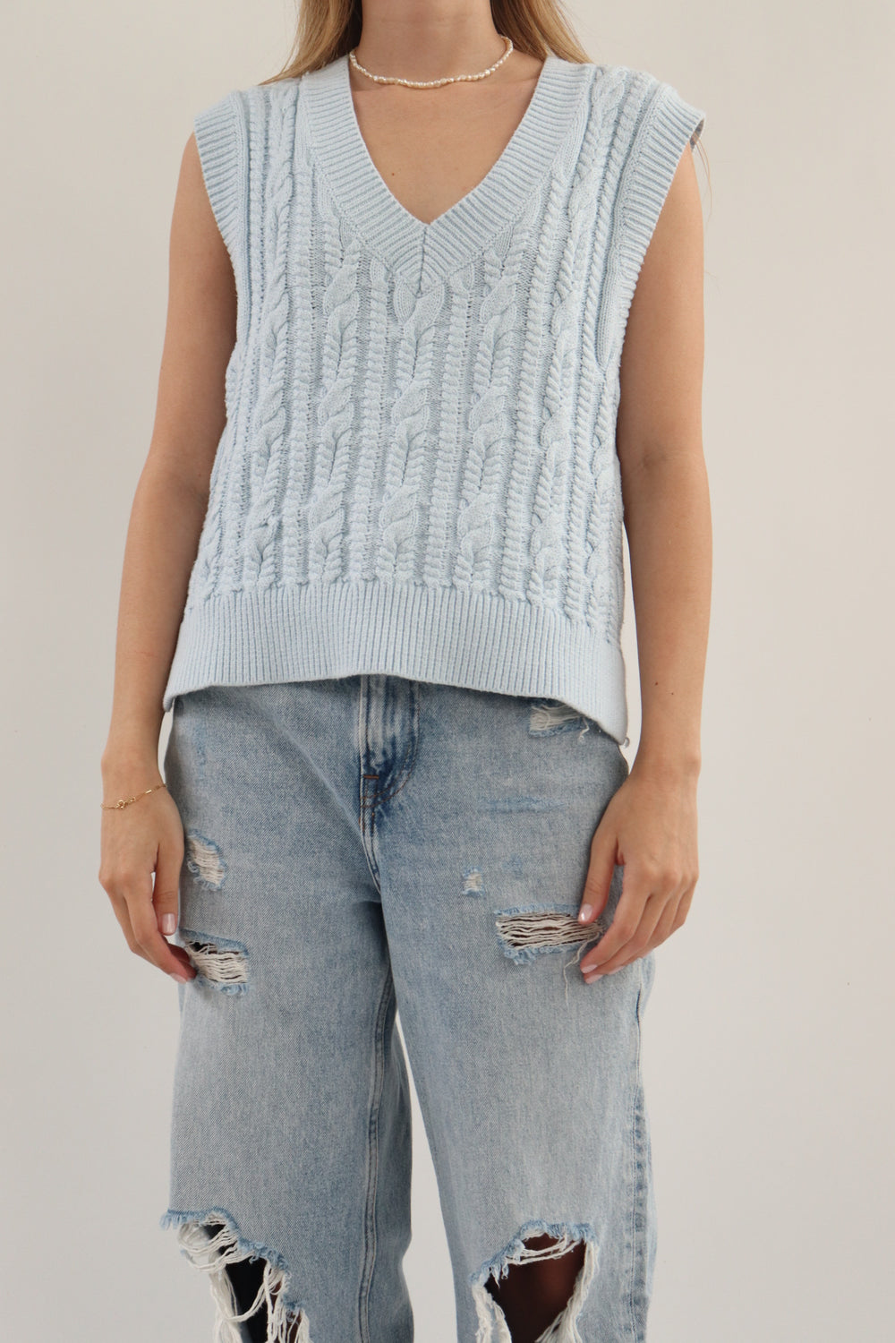 Estilo y comodidad se fusionan en Esprit Chaleco Tejido Textura Azul de ESPRIT.